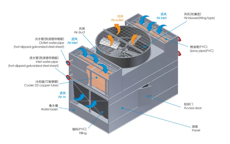 無錫沃信流體閉式復合流冷卻塔采用先進的工業(yè)設計,在工業(yè)應用中不僅高效節(jié)能而且環(huán)保。無錫沃信流體閉式復合流冷卻塔以其精心的選材,精湛的設計,使設備在運行和維護保養(yǎng)方面具有更優(yōu)秀的品質: